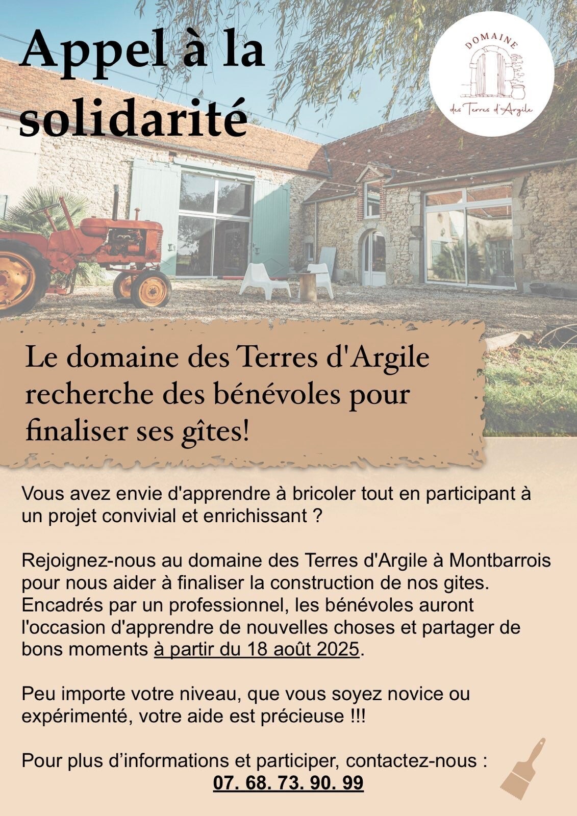 Le domaine des Terres d'Argile recherche des bénévoles pour finaliser ses gîtes!